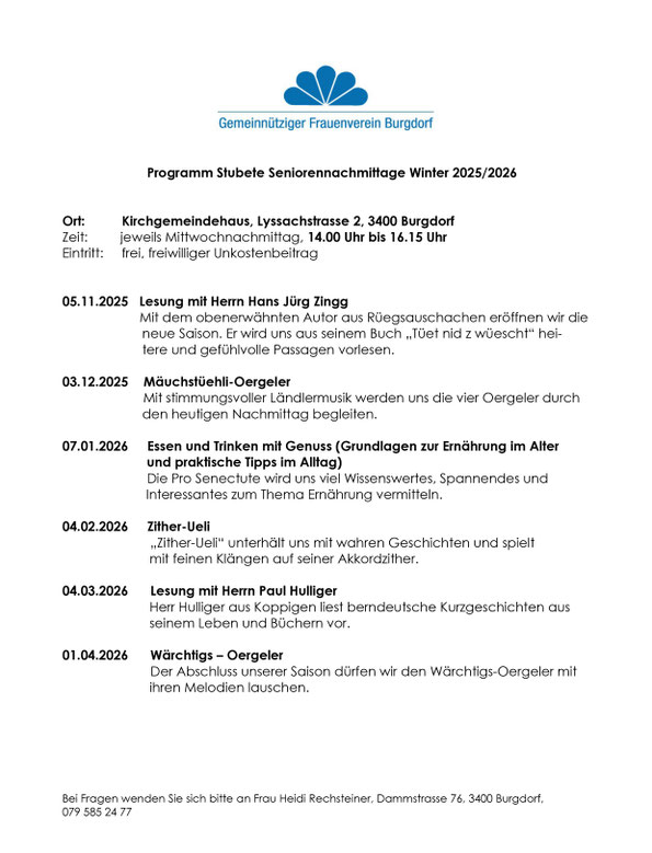 Auskunft: Heidi Rechsteiner, 079 585 27 44